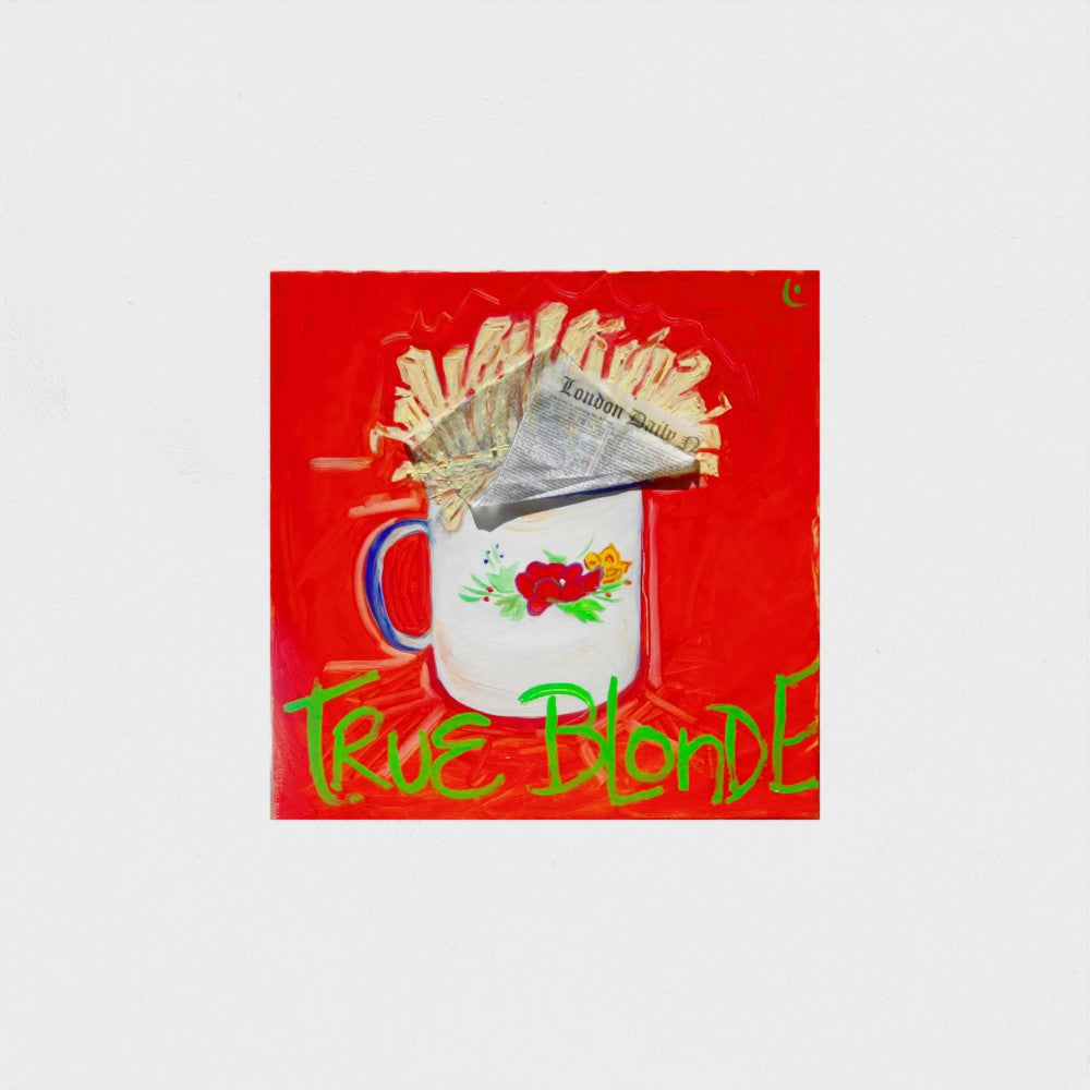 "BLONDE!" is painted in luminous yellows and soft golds and the piece glows with humour and appetite. The inscription “True Blonde” says it all — beauty and wit, served hot.