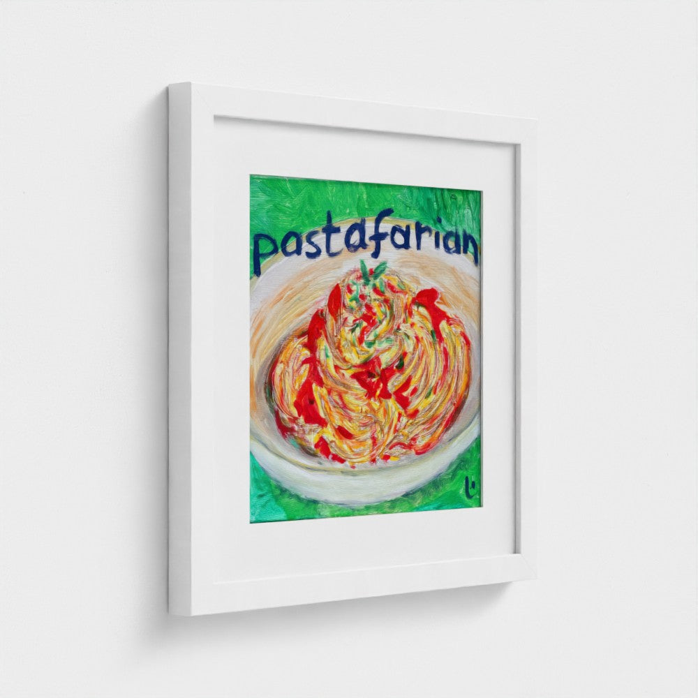 At the centre: a beautifully twirled serving of pasta, crowned with the bold, cheeky inscription “Pastafarian.”