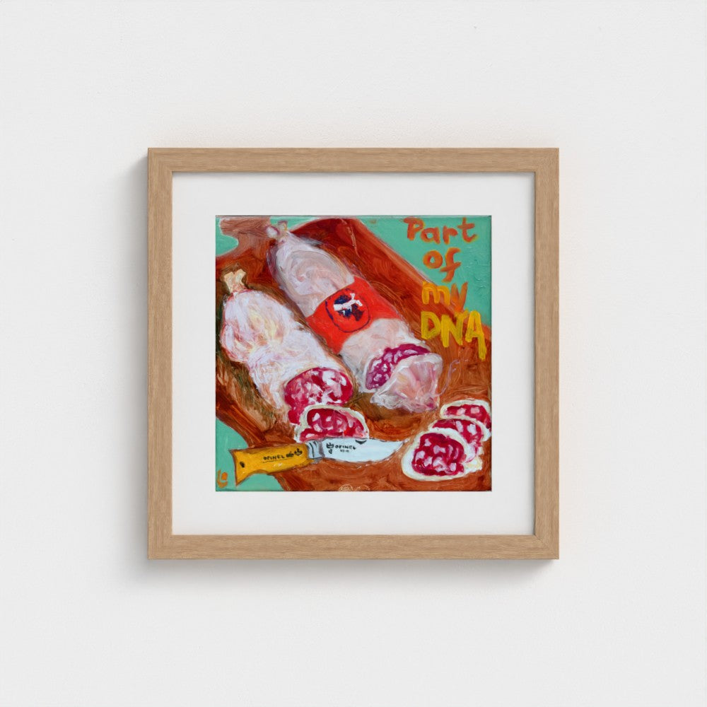 “SALAMI!” is a fine art print on paper celebrating Corsican cured dry meat — not just as food, but as heritage.
